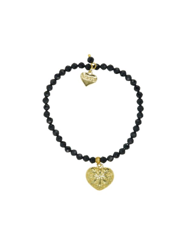 Designed and handmade in Herefordshire my latest 14ct Gold plated, semi-precious, stretch bracelet is made from beautiful Black Spinnel Gemstone. The gemstone beads are approx 4mm each and faceted to give extra sparkle when the light hits them.