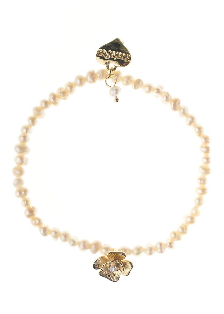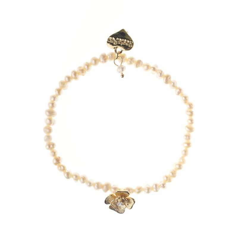 An elegant, 14 carat Gold plated Gold Pearl Rose bracelet that will add a touch of femininity to any look.