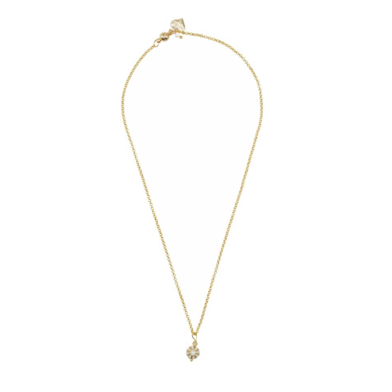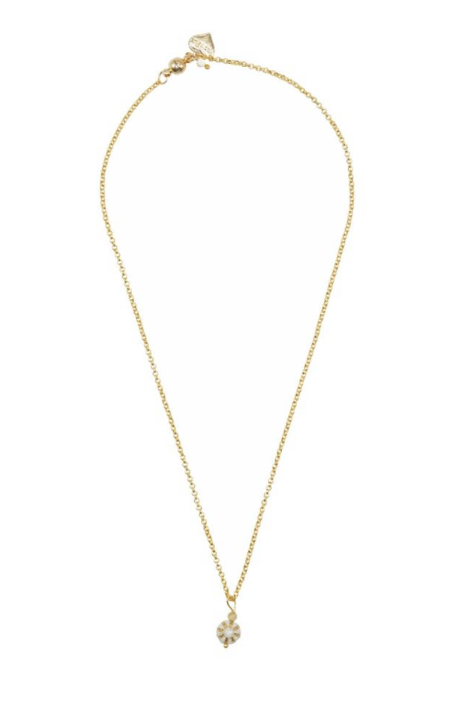 This beautiful necklace is handmade using 14ct Gold plated chain with a stunning 'Belle' flower charm measuring 1cm in diameter and it is finished using a gold magnet clasp with my signature 14ct Gold plated Rosie Fox heart charm.