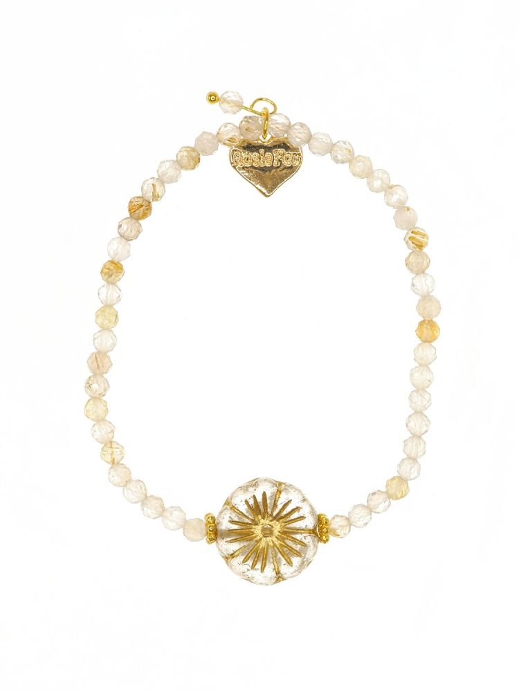 Designed and handmade in Herefordshire this stunning Gold plated,semi-precious bracelet is made from Gold Rutilated Quartz crystals. The gemstones are 3mm each and faceted to give extra sparkle when the light hits them.