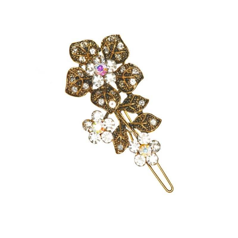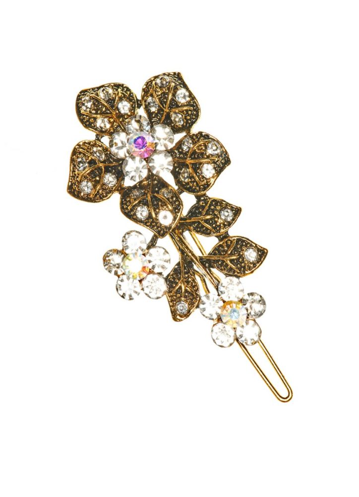 This is a stunning Gold Rose Crystal Hair Clip with crystal embellishments. This is a hair accessory that can go from day to evening wear with ease.