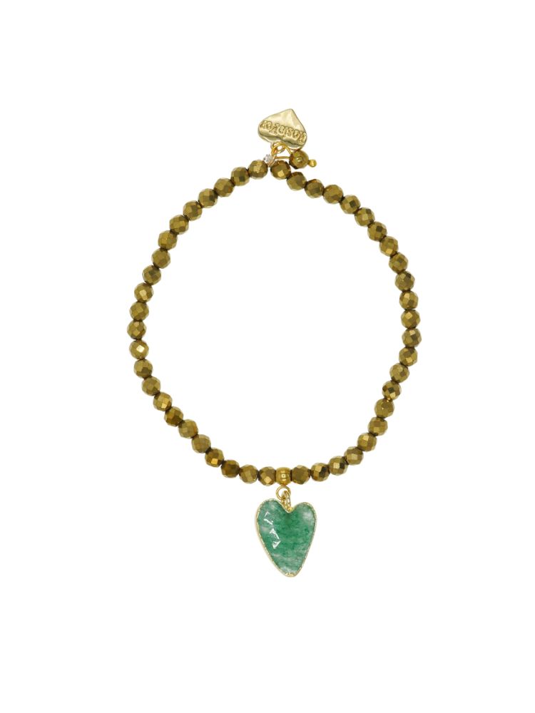 This beautiful handmade bracelet has a stunning Green Agate Gemstone Heart and my signature 14ct Gold plated Rosie Fox heart charm.