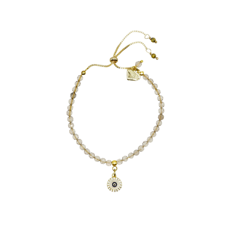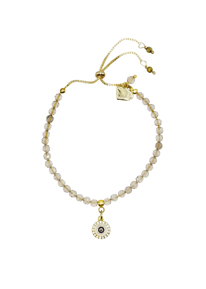 This beautiful handmade bracelet has a stunning Protective Eye Crystal charm measuring approx 1cm in diameter and my signature 14ct Gold plated Rosie Fox heart charm.