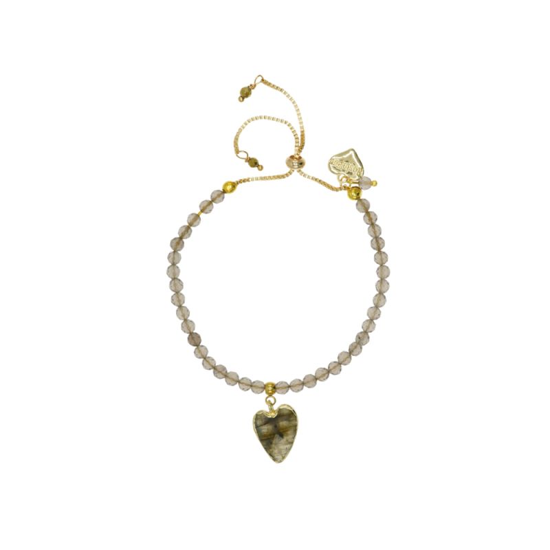 This stunning handmade bracelet has a beautiful Labradorite Gemstone Heart and my signature 14ct Gold plated Rosie Fox heart charm.