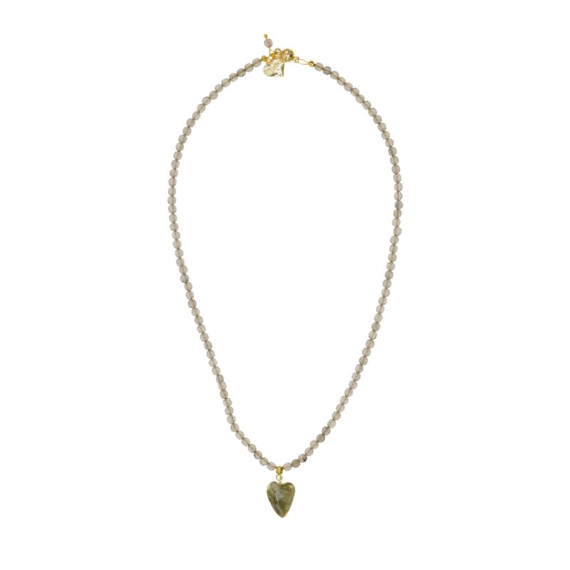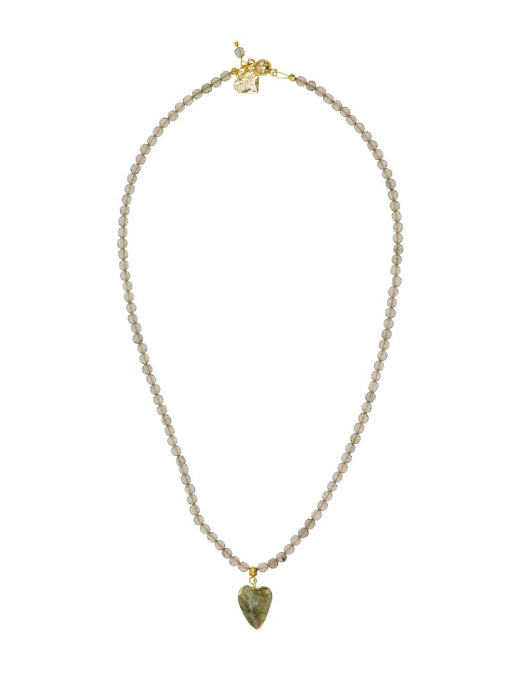 Designed and handmade in Herefordshire this stunning 14ct Gold plated,semi-precious necklace is made from sparkling Ice Obsidian gemstone beads and Labradorite Gemstone Heart. It is finished using a strong gold magnet clasp with my signature 14ct Gold plated Rosie Fox heart charm.
