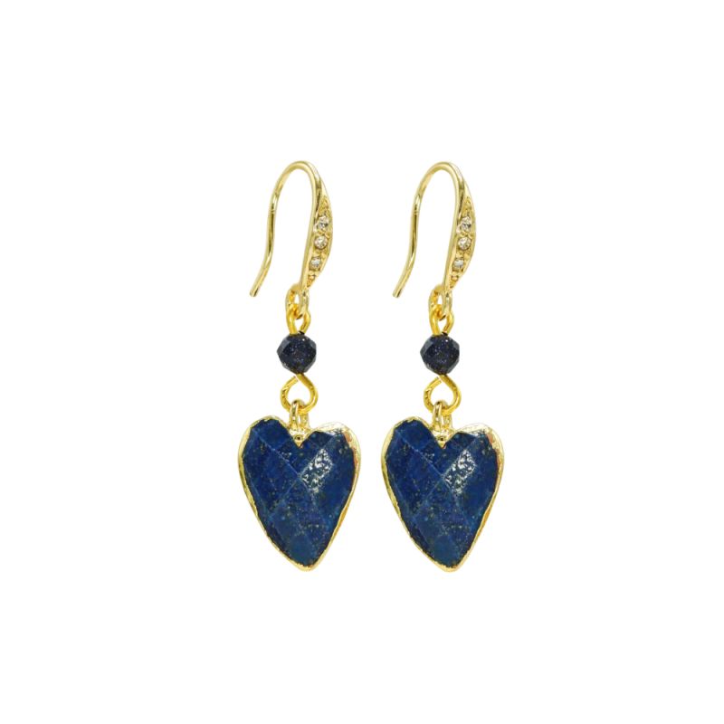These stunning Lapis Lazuli Gemstone Heart earrings are handmade in the UK. They are hypoallergenic and made from 18ct Gold plated hooks which are embellished with sparkling crystals.