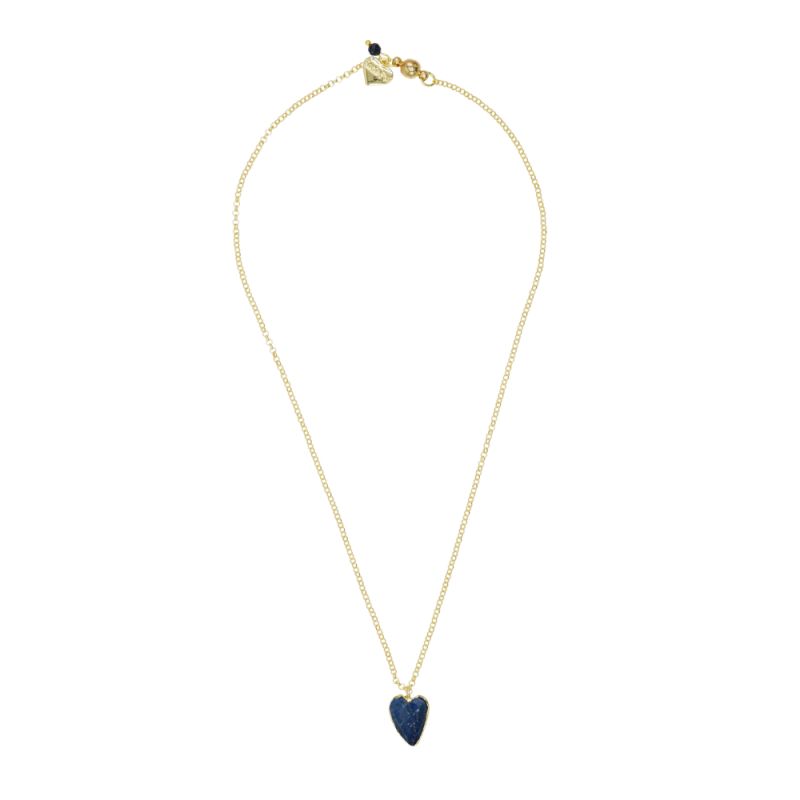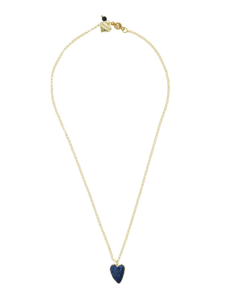 Designed and handmade in Herefordshire this beautiful 14ct Gold plated necklace lies perfectly adoring your neckline. There is a Navy Starstone gemstone crystals and a beautiful Lapis Lazuli Gemstone Heart.