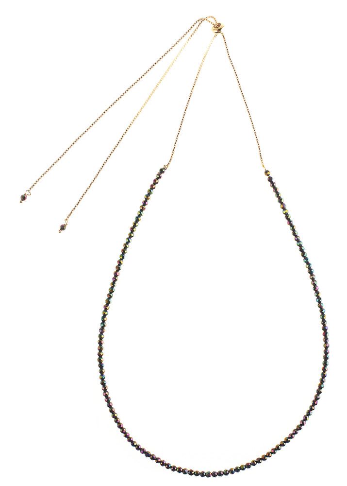 This elegant handmade 14 carat gold plated Magnetite Front Tie Necklace will add a contemporary edge to your outfit.