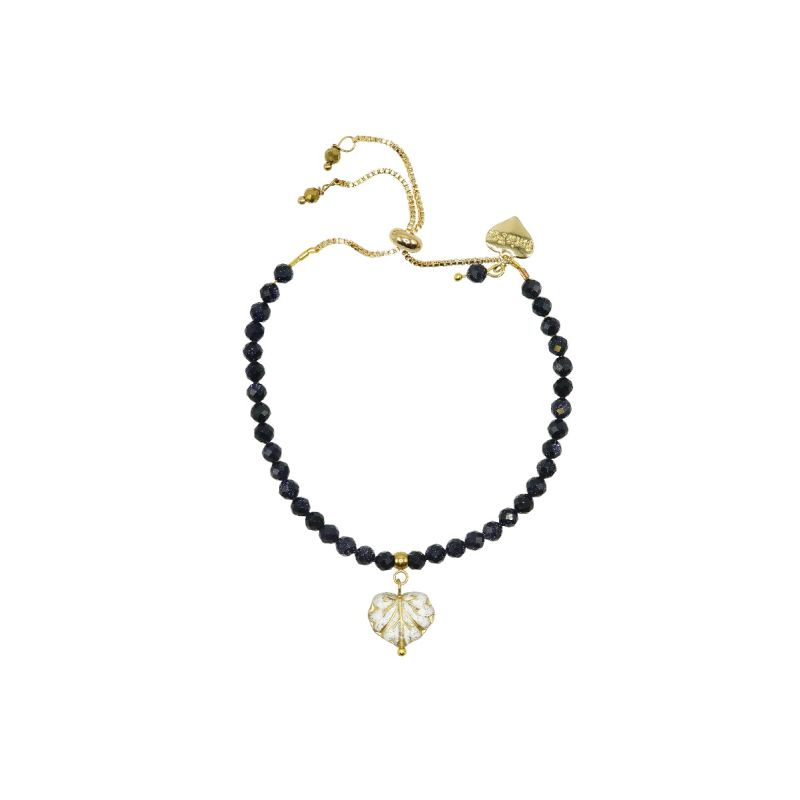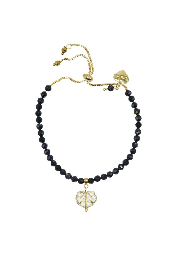 Designed and handmade in Herefordshire this stunning 14ct Gold plated, semi-precious, adjustable bracelet is made from beautiful navy Starstone gemstone crystals. The gemstone beads are approx 4mm each and faceted to give extra sparkle when the light hits them.