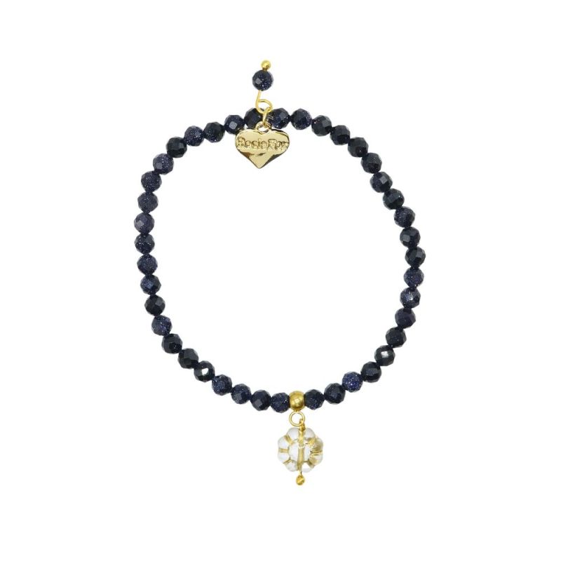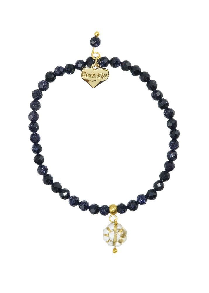 Designed and handmade in Herefordshire this stunning 14ct Gold plated, semi-precious, stretch bracelet is made from beautiful navy Starstone gemstone crystals. The gemstone beads are approx 4mm each and faceted to give extra sparkle when the light hits them.