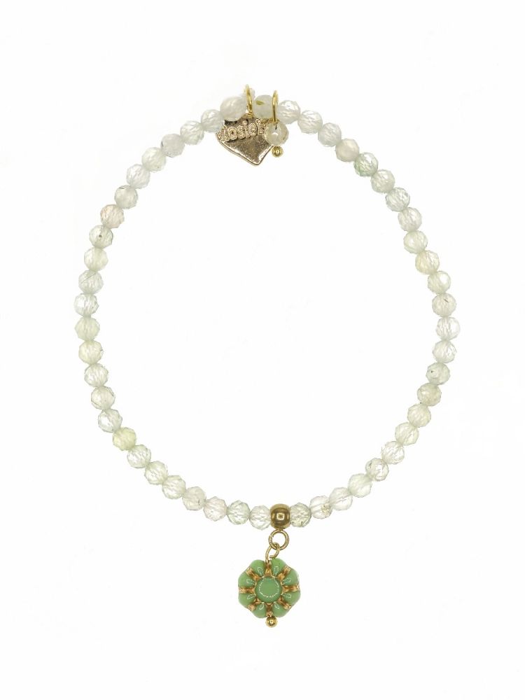 The pale green Prehnite faceted gemstone beads are a beautiful neutral colour and look fabulous worn either alone or stacked with other bracelets. They are also known for their power to promote health, wellness and emotional balance. Let this beautiful gemstone support you on your wellness journey.