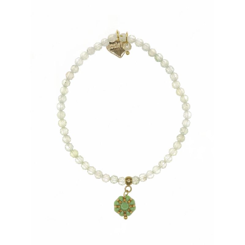Designed and handmade in Herefordshire this stunning 14ct Gold plated, semi-precious bracelet is made from pale green Prehnite gemstone crystals. The gemstones are 3mm each and faceted to give extra sparkle when the light hits them.