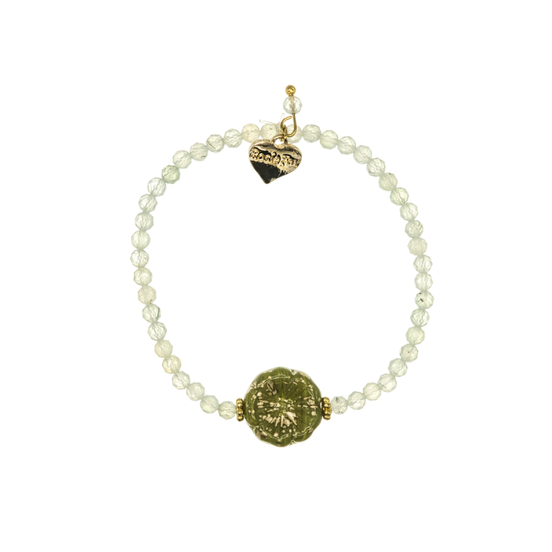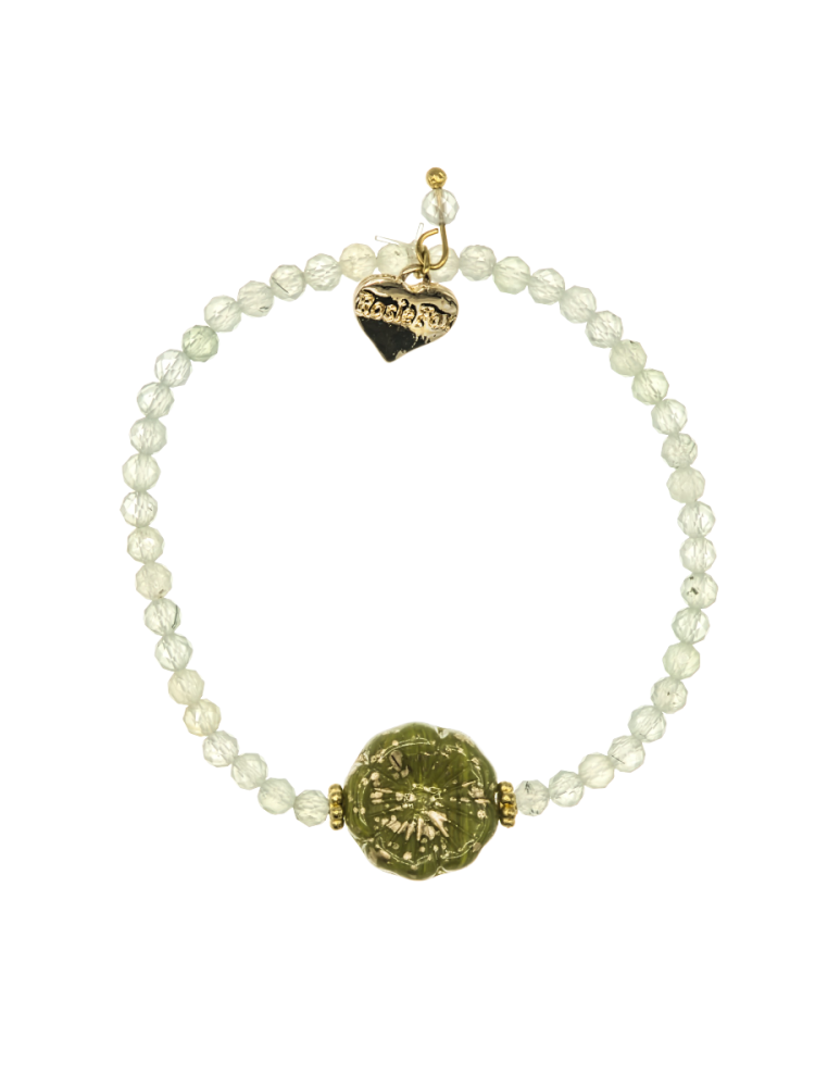The pale green Prehnite faceted gemstone beads are a beautiful neutral colour and look fabulous worn either alone or stacked with other bracelets. They are also known for their power to promote health, wellness and emotional balance. Let this beautiful gemstone support you on your wellness journey.