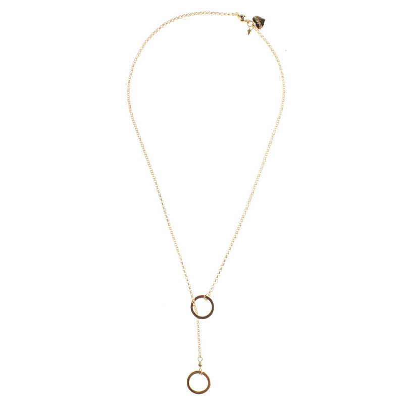 This elegant handmade 14 carat gold plated Pyrite Empowerment Circle Lariat Necklace will add a contemporary edge to your outfit.