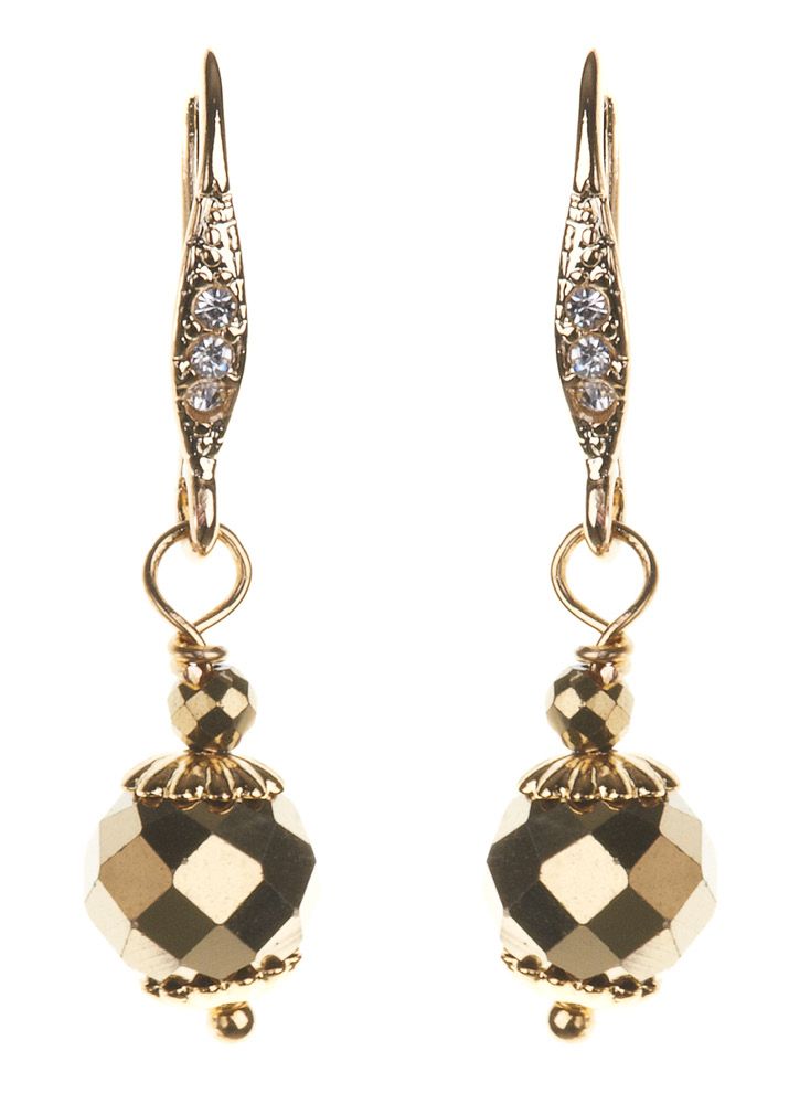 These elegant, handmade 14 carat Gold plated Pyrite Gemstone Ball Earrings will add a touch of glamour to your outfit.