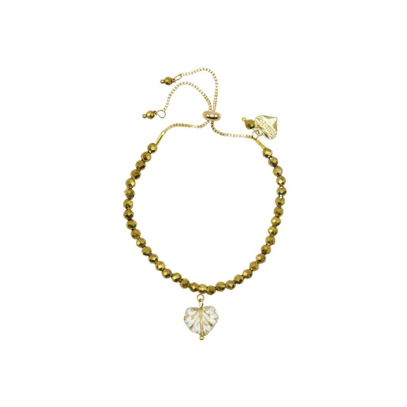 This beautiful handmade bracelet has a beautiful Bohemian crystal Maple leaf charm measuring approx 1.5cm in diameter, 14ct Gold chain and my signature 14ct Gold plated Rosie Fox heart charm.