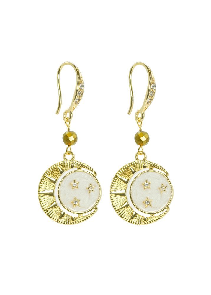These stunning New Moon,Sun and Stars Earrings are handmade in the UK, they are crafted with beautiful Pyrite gemstone crystals. They are hypoallergenic and made from 18ct Gold plated hooks which are embellished with sparkling crystals.
