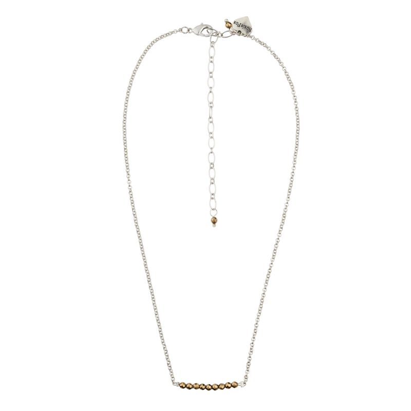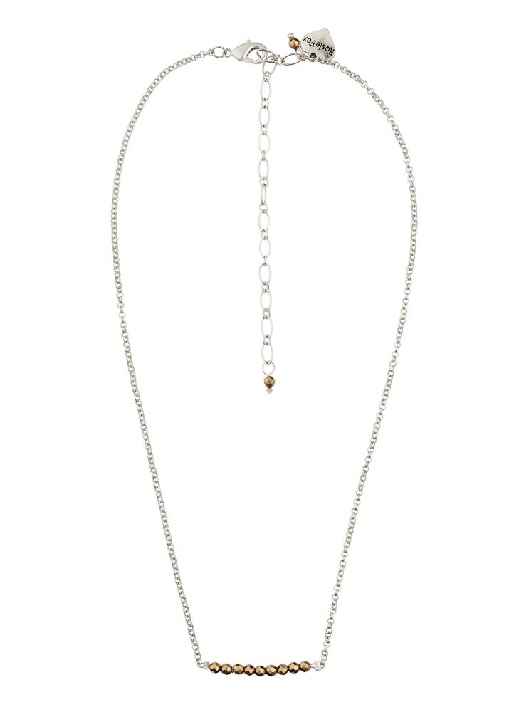 A stunning, semi-precious necklace with a beautiful bar of dazzling gold pyrite gemstones on a delicate silver chain.