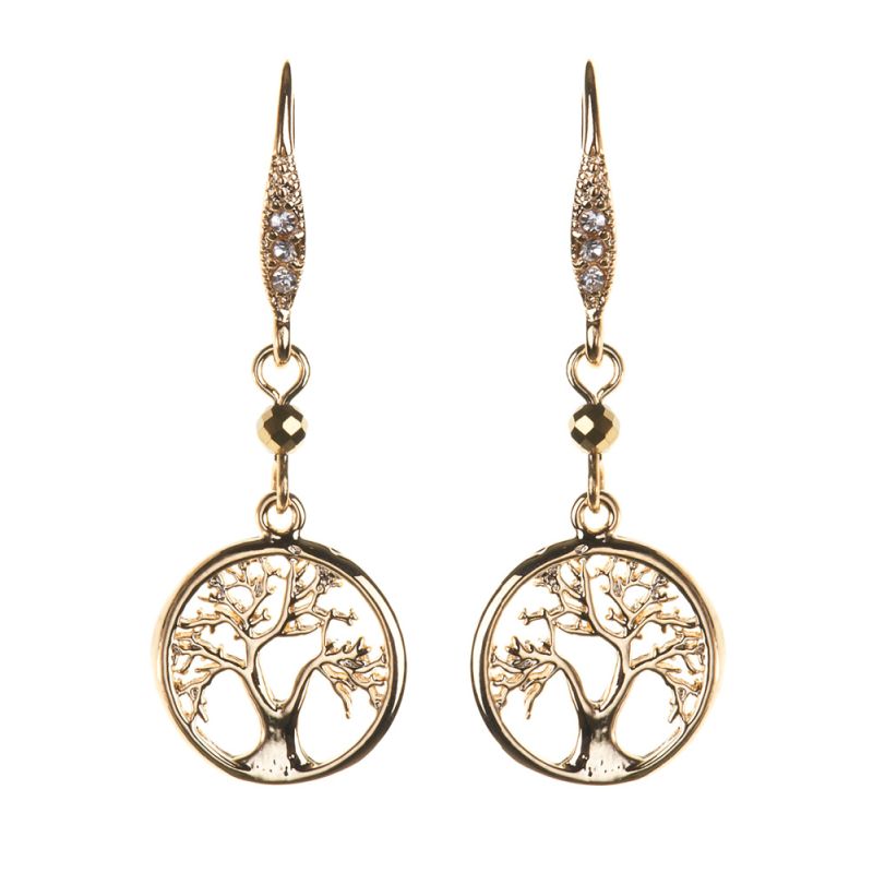 A gorgeous pair of handmade, 14 carat gold plated Tree Of Life Earrings representing nature's finest design and embellished with natural Pyrite beads.