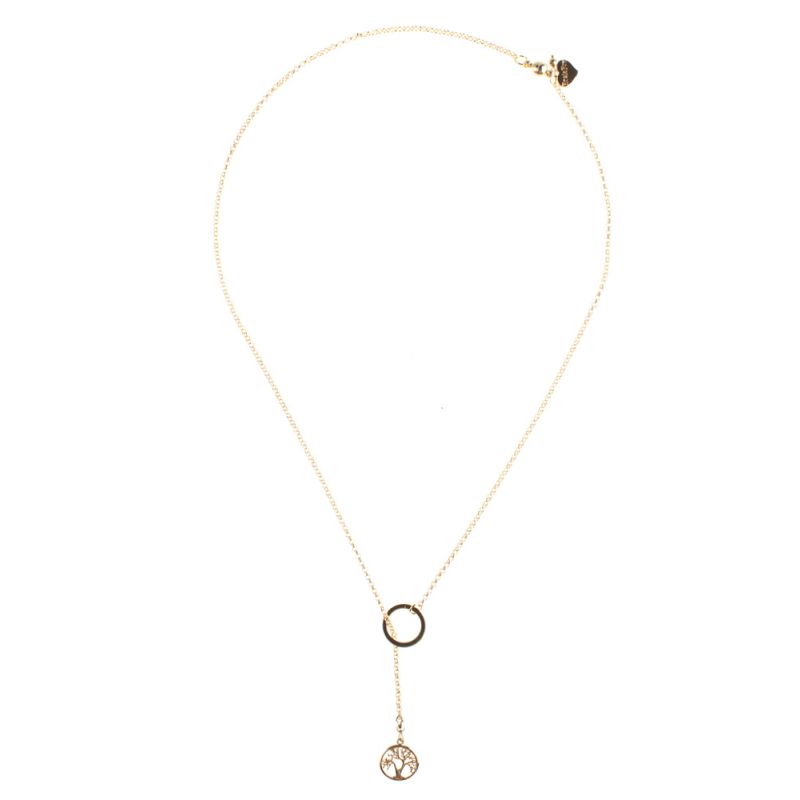 This stunning 14 carat gold plated Pyrite Tree of Life Lariat Necklace will add a touch of glamour to any outfit.
