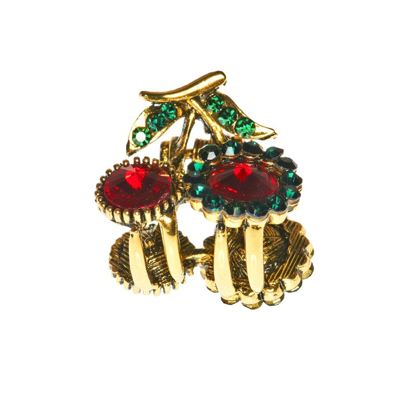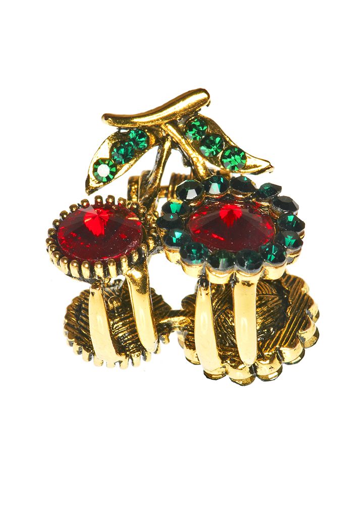 This is a gorgeous Red Cherry jaw clip with red and green gemstone embellishments. This is a hair accessory that can go from day to evening wear with ease.