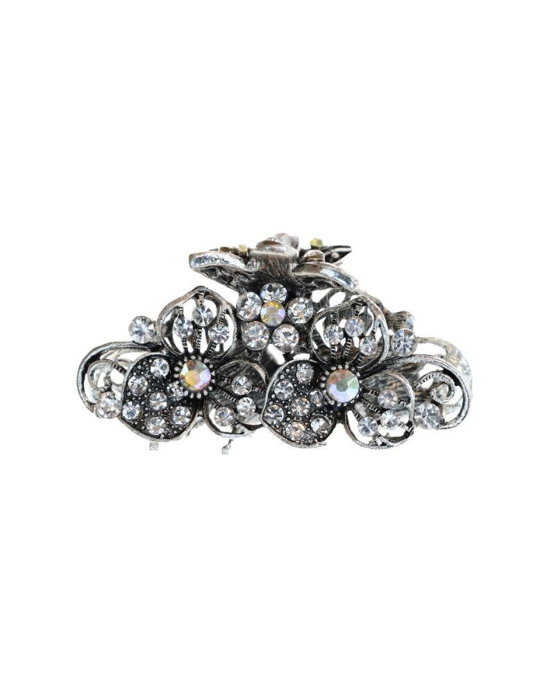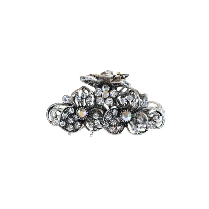 This beautiful silver floral jaw clip is embellished with sparkling crystals and is a hair accessory that will add a gorgeous, elegant touch to any outfit.