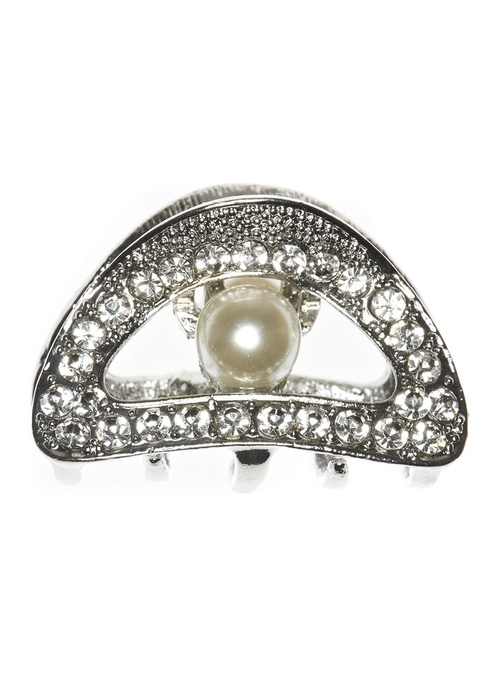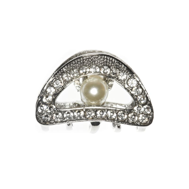 This is a stunning Silver Crystal Bow jaw clip with crystal embellishments and stunning pearls. This is a hair accessory that can go from day to evening wear with ease.