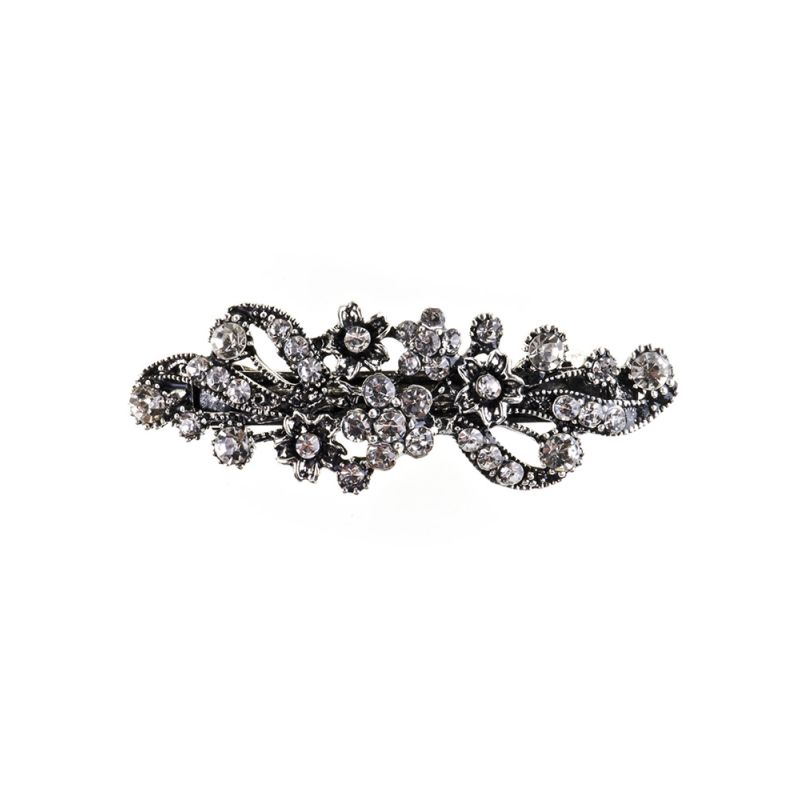This is a stunning Silver Crystal Swirl Barrette Clip with shimmering crystal embellishments. This is a hair accessory that will be a beautiful addition to any look.