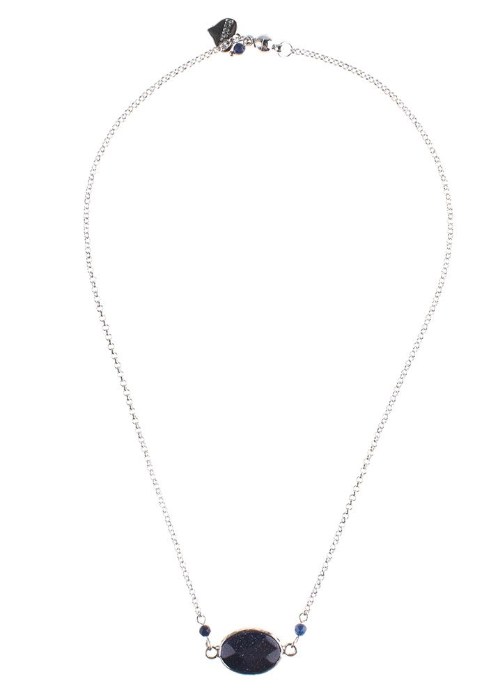 This stunning silver plated Silver Navy Gemstone Chain Necklace is the perfect addition to any look.