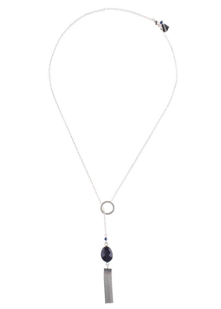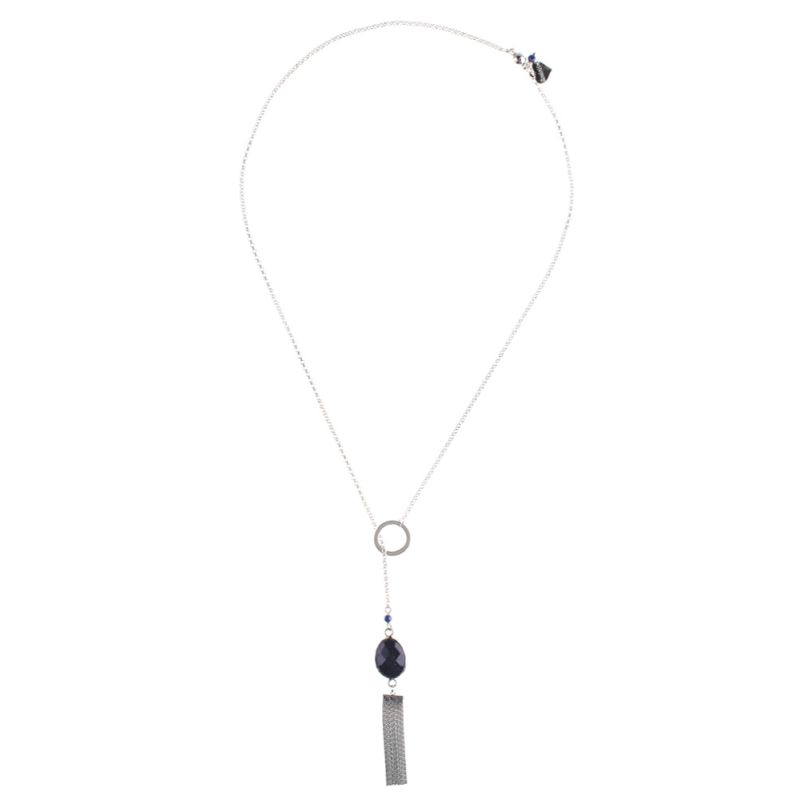This stunning silver plated Silver Navy Gemstone Tassel Lariet Necklace is the perfect addition to any look.