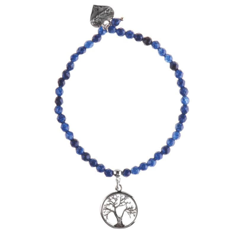 A beautiful simple Navy Agate bracelet adorned with a silver plated Tree of Life charm symbolising positive energy, good health and bright future, finished with a silver plated signature Rosie Fox heart charm.