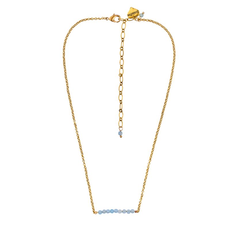 An exquisite necklace, handmade with a beautiful bar of semi-precious, blue agate beads. With bright sky blue tones, this seasonally-inspired accessory will compliment any outfit.