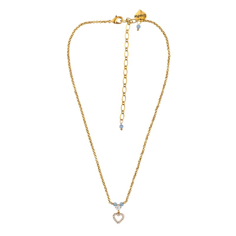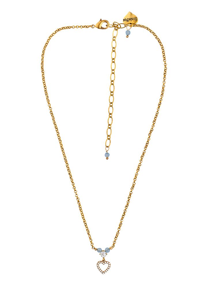 A gorgeous necklace, handmade with a crystal encrusted charm and adorned with semi-precious, sky blue agate beads. With soft blue tones, this beautiful accessory will compliment any outfit, and the crystal heart charm adds a sparkling touch of feminine elegance.