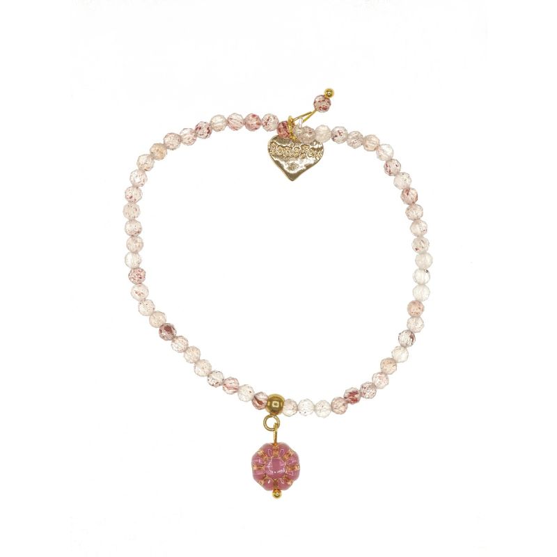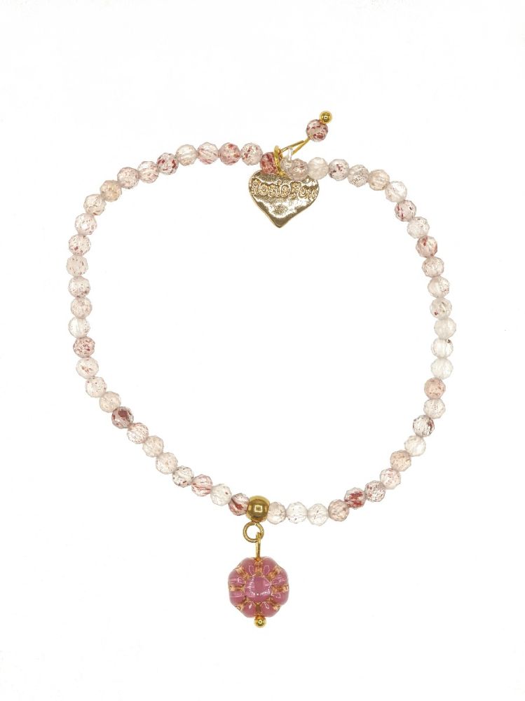 Designed and handmade in Herefordshire this stunning 14ct Gold plated, semi-precious bracelet is made from pale pink Strawberry Quartz gemstone crystals. The gemstones are approx 4mm each and faceted to give extra sparkle when the light hits them.