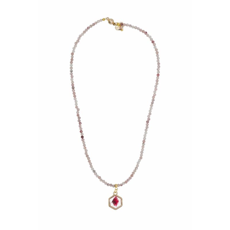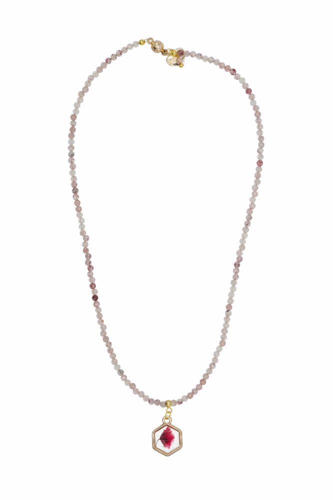 This beautiful handmade necklace, has a stunning pressed pink flower in resin. All the new Rosie Fox flower resin charms are handmade here in our Hereforshire design studio using a fantastic eco-friendly resin and pressed natural flowers. The flower charm measuring 1.5cm in diameter and the necklace is finished using a gold plated magnet clasp with my signature 14ct Gold plated Rosie Fox heart charm.