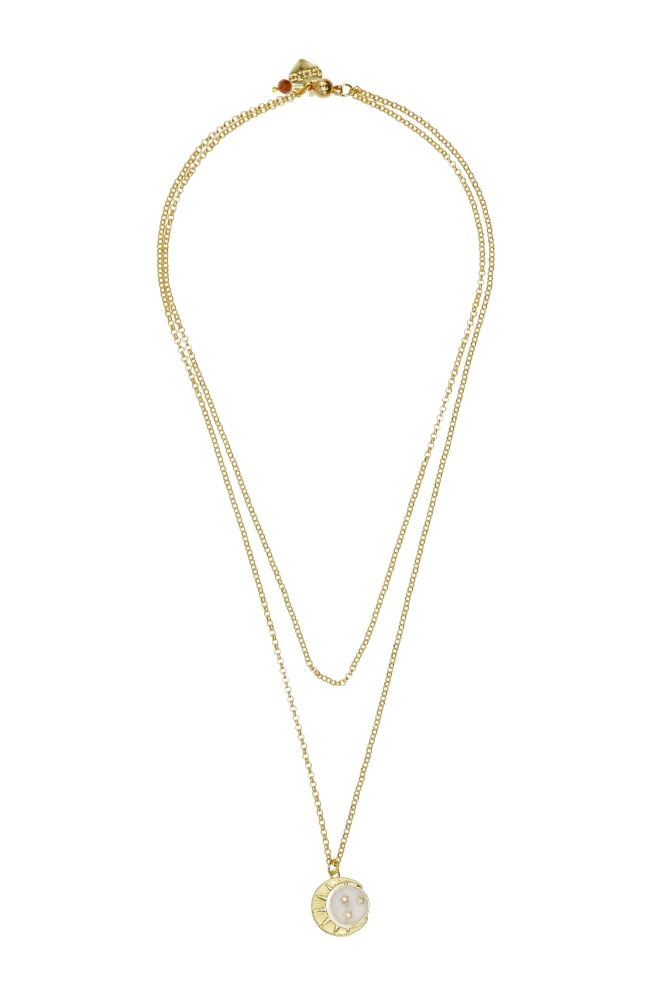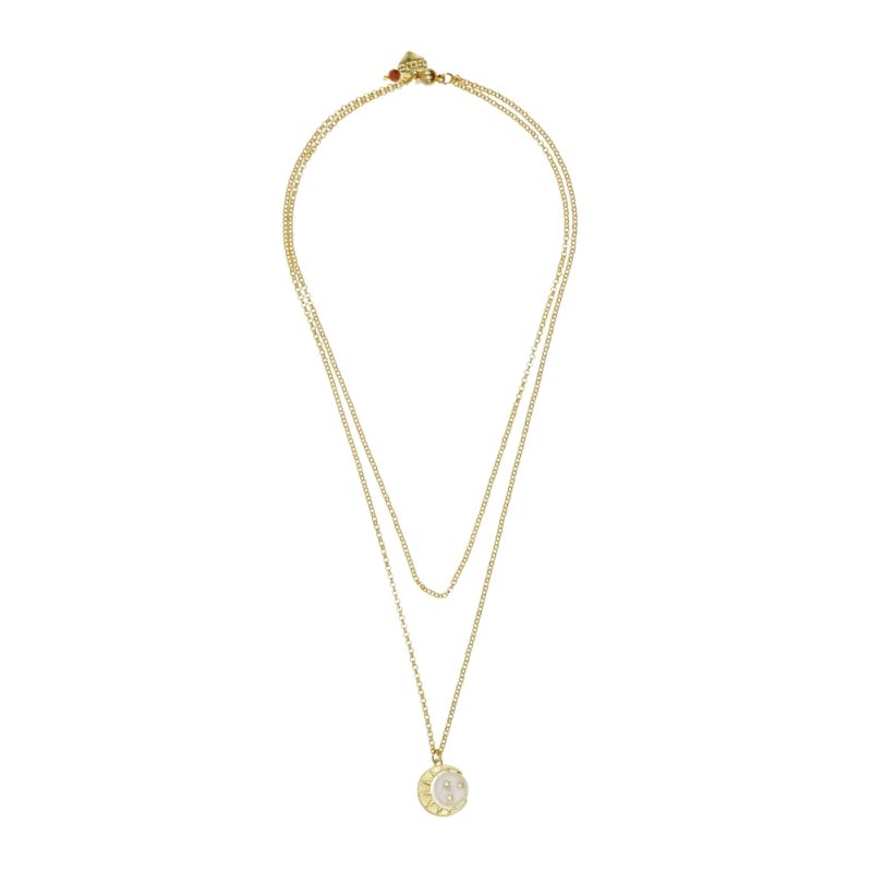 This beautiful 18ct Gold plated chain necklace has two layers and lies perfectly adoring your neckline. There is a beautiful Sunstone gemstone and the stunning 18ct gold plated New Moon,Sun and Stars charm finishes the necklace on the lowest layer.
