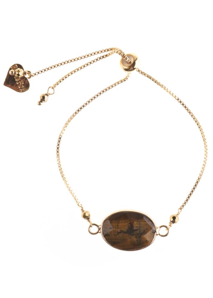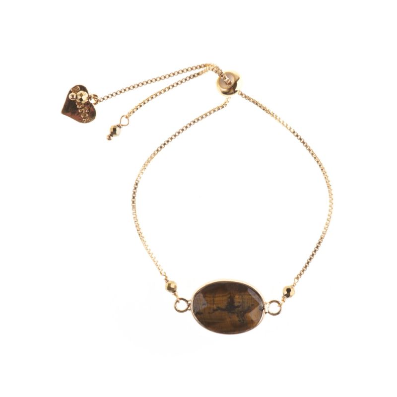 A stunning handmade gold plated Tigers Eye Chain Bracelet. This on-trend bracelet is delicate and sophisticated. It is finished with the signature Rosie Fox heart charm.